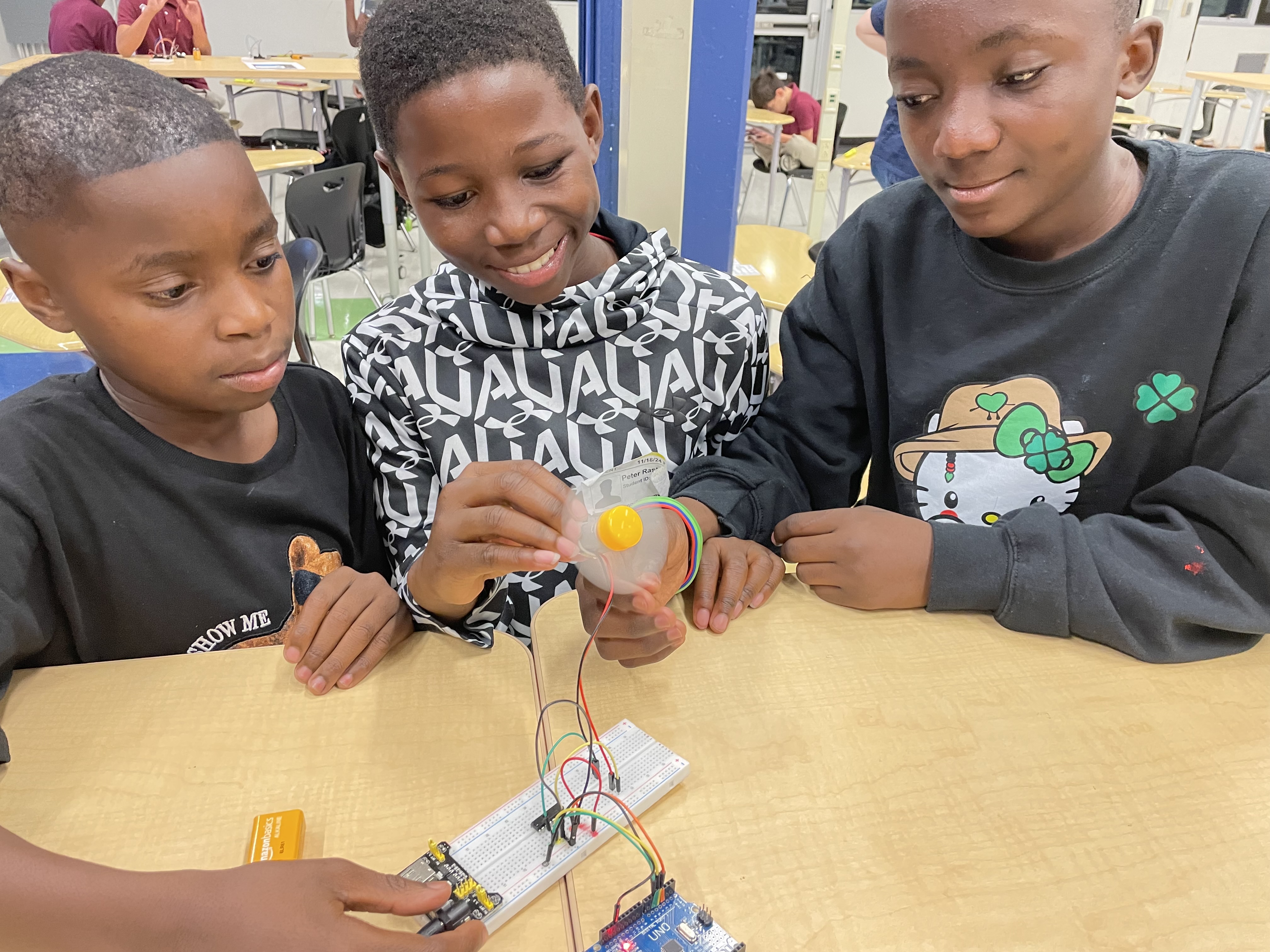 We give students their own electronics kits and teach free hands-on workshops and classes designed to to equip students with tools to spark interest in electronics.